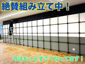 奥の倉庫が綺麗になり、何か骨組みのようなものが壁一面に貼られています!