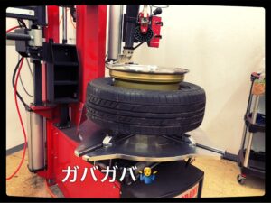 通常のタイヤ組替え作業に加え、ホイールとタイヤの幅が全く合っていないので、