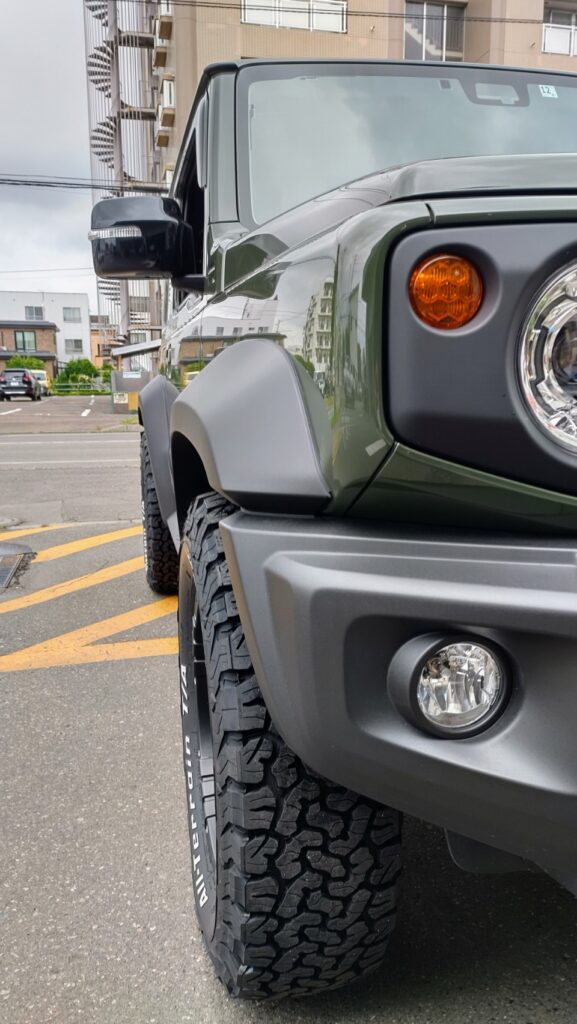 カラーをセミグロスブラックにすることにより足もとが引き締まって見えますし、タイヤのホワイトレターが強調されてカッコイイですね😎😎😎