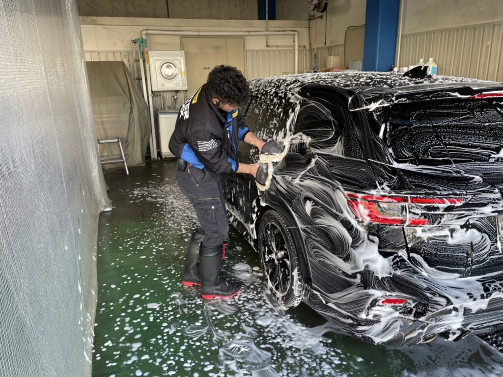 主に水垢落とし、コーティング塗布前の脱脂です❗️