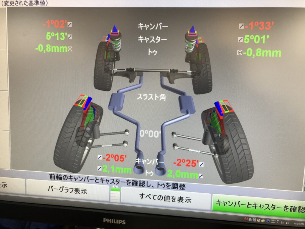 キャンバーとトーに左右差があったので、微調整していきます☝️