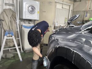塗り広げながらガラス被膜を形成し、縦横にすり込みながら定着させていきます✨