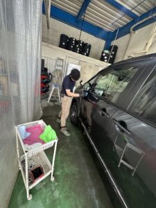 主に水垢落とし、コーティング塗布前の脱脂です❗
