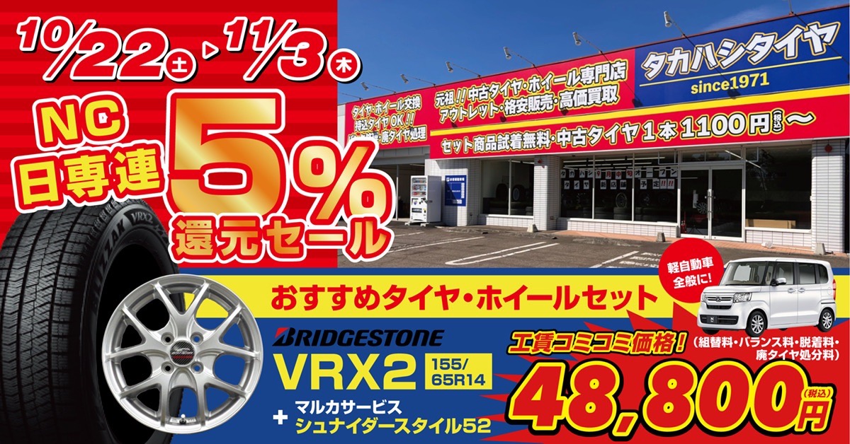 タカハシタイヤ冬のスペシャルSALEは11/3(木)まで開催!