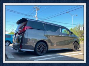 これまた珍しいアルファードの車体色(グラファイトメタリック)と絶妙に似合っていますね!