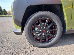 グロスブラックのホイールの奥に見えるレッドラインがオシャレでカッコいいホイールです♪