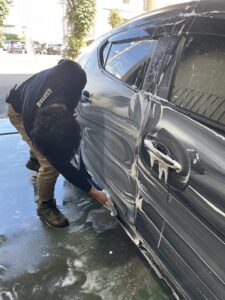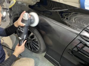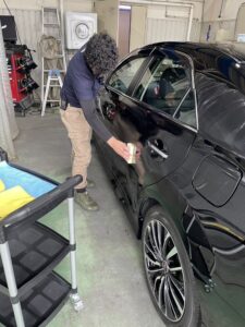洗い終わったら、爆ツヤを使いコーティング施工前の下地処理を行います❗