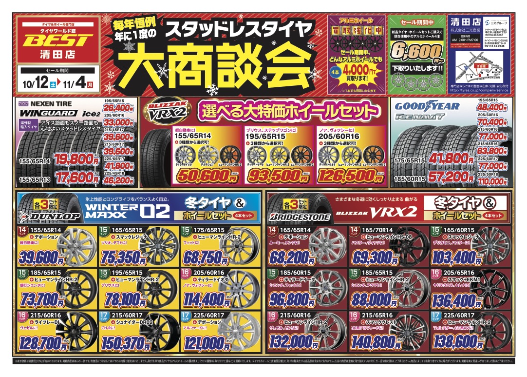 【タイヤワールド館BEST清田店】スタッドレスタイヤ大商談会🚗