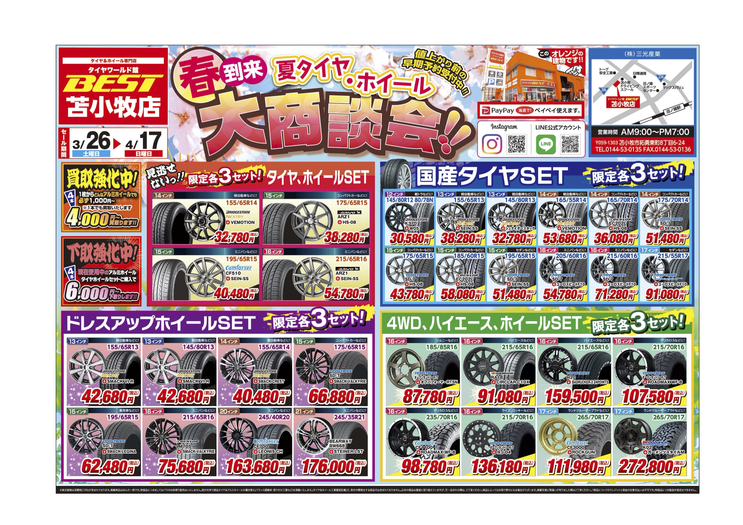【タイヤワールド館BEST苫小牧店】春到来♪夏タイヤ・ホイール大商談会!