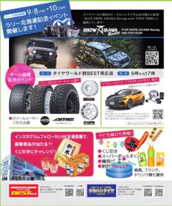 ラリー北海道の哀川翔さんのチームに協賛する事になりまして、記念イベントを9/8(金)~9/10(日)の3日間開催いたします㊗️🎉