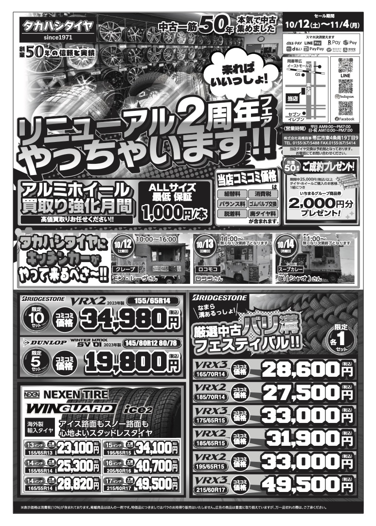 【タカハシタイヤ】リニューアル2周年フェアやっちゃいます⭐️