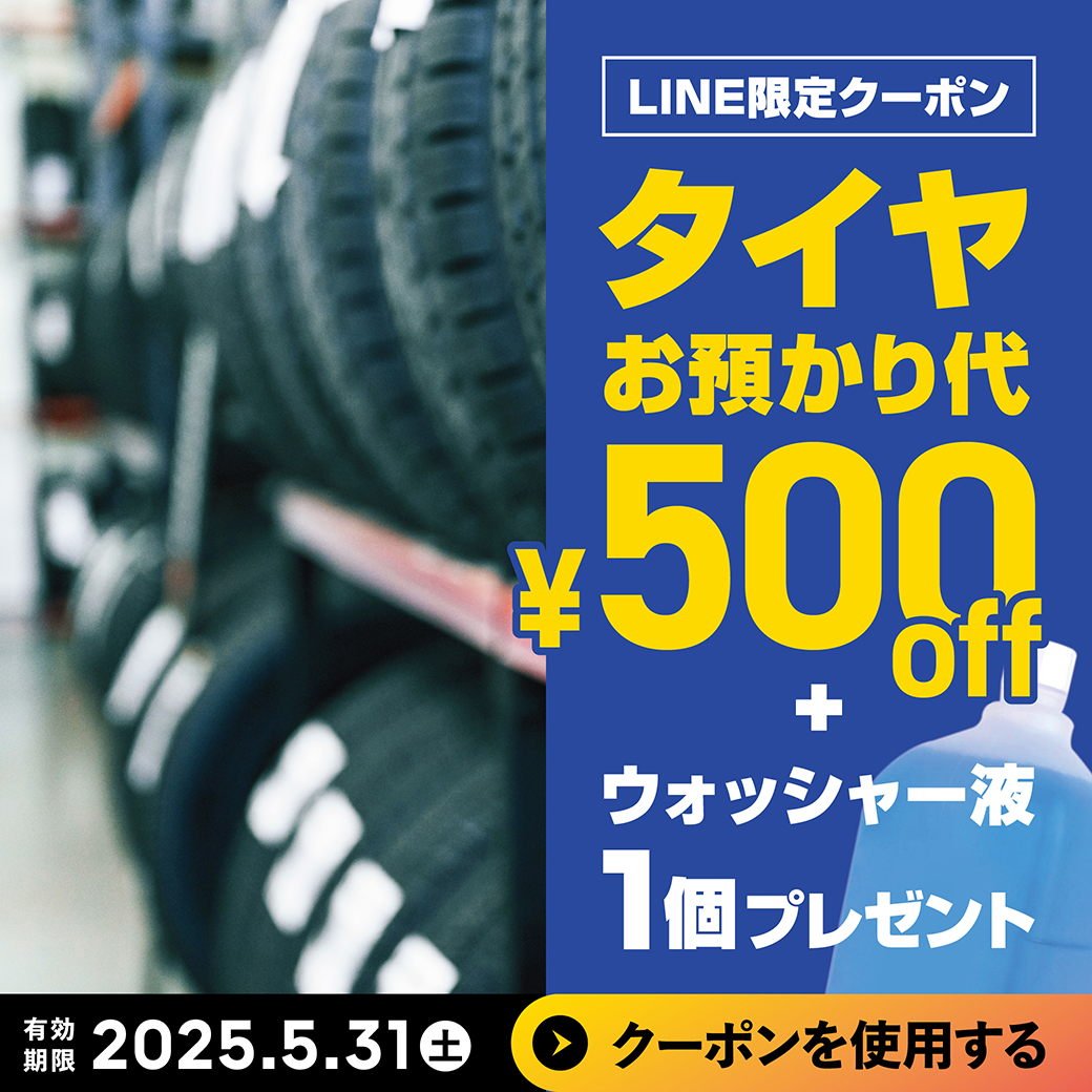 ☆タイヤのお預かり500円割り引き+ウォッシャー液1個プレゼント