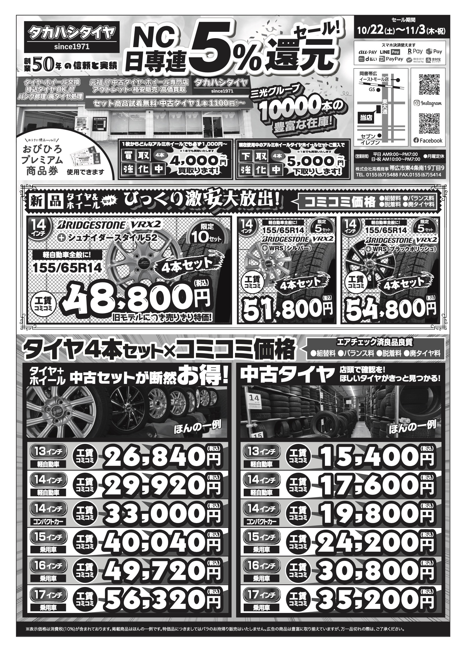 【タカハシタイヤ】NC日専連5%還元セール✨10,000本の豊富な在庫❗️ 〒080-0804 北海道帯広市東4条南19丁目9番地 お知らせ タカハシタイヤ 中古タイヤ・ホイール情報 よかったらシェアしてね! URLをコピーしました! URLをコピーしました!