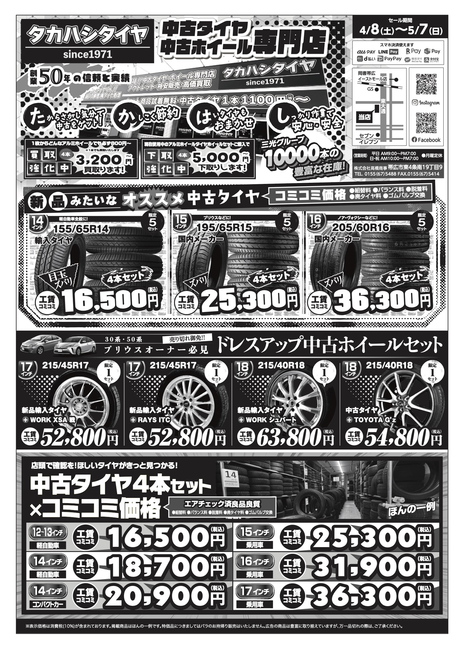 こんにちは!タカハシタイヤ、セールのお知らせです!!