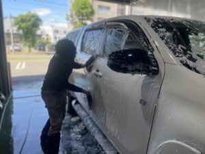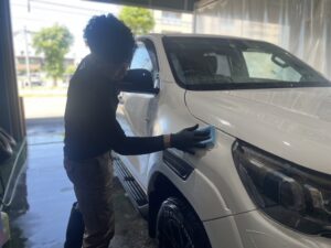 主に水垢落とし、コーティング塗布前の脱脂です❗