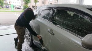 主に水垢落とし、コーティング塗布前の脱脂です❗