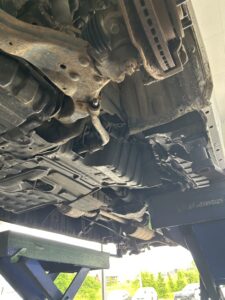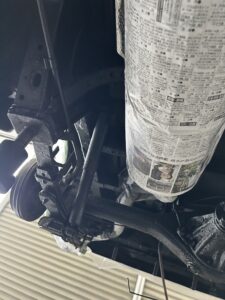 マフラーにかかってしまうと熱で溶けて室内に匂いが充満してしまいます…