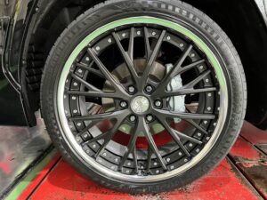 このホイールは鍛造3ピースホイールになってまして、スポークのダイヤモンドのような美しいカッティングが特徴的で、フルリバースの大口径は迫力満点ですね🤩