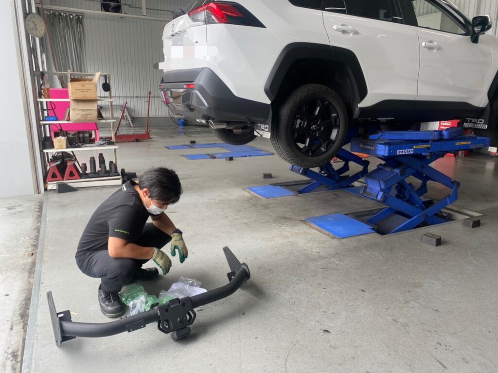 現行RAV4にジーギアヒッチメンバーを取り付けです‼️