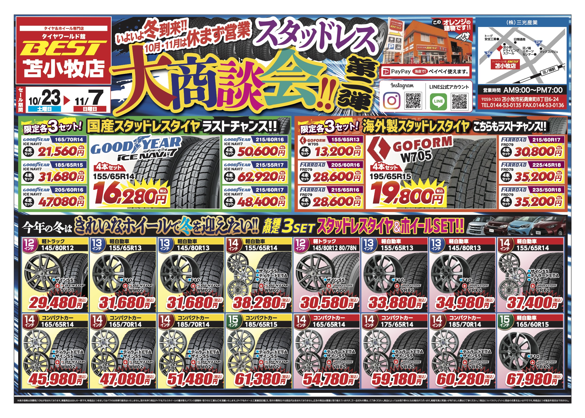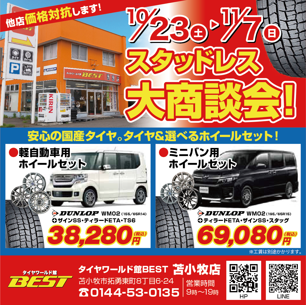 【タイヤワールド館BEST苫小牧店】 スタッドレス大商談会開催☆第2段! 〒059-1303 苫小牧市拓勇東町8丁目6-24 お知らせ イベント 中古タイヤ・ホイール情報 新品タイヤ・ホイール情報 苫小牧店 よかったらシェアしてね! URLをコピーしました! URLをコピーしました!