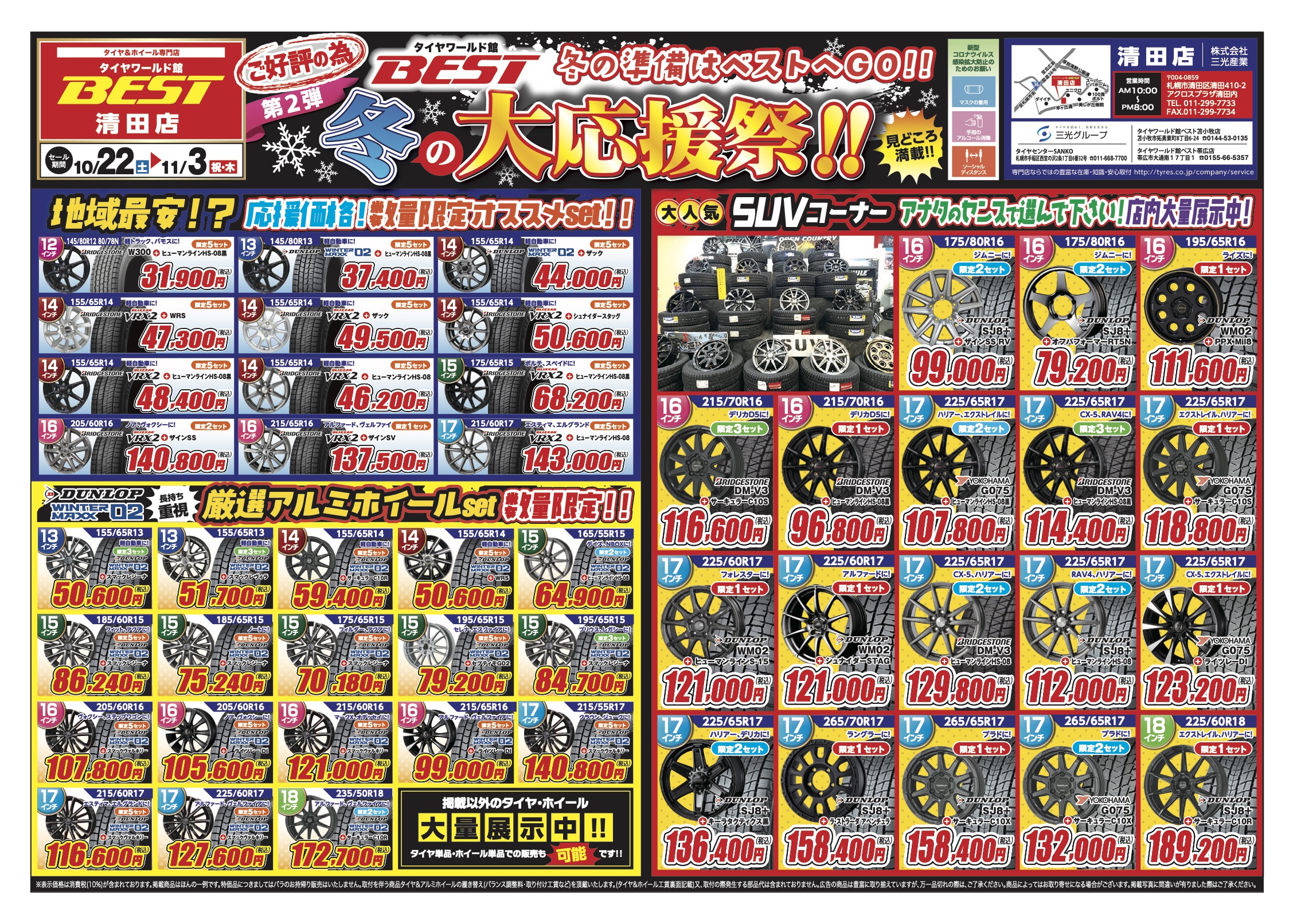 【タイヤワールド館BEST清田店】冬の大応援祭⭐️冬の準備はベストへGO!🚗 〒004-0859 北海道札幌市清田区清田 アクロスプラザ お知らせ 新品タイヤ・ホイール情報 清田店 よかったらシェアしてね! URLをコピーしました! URLをコピーしました!
