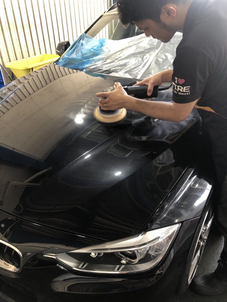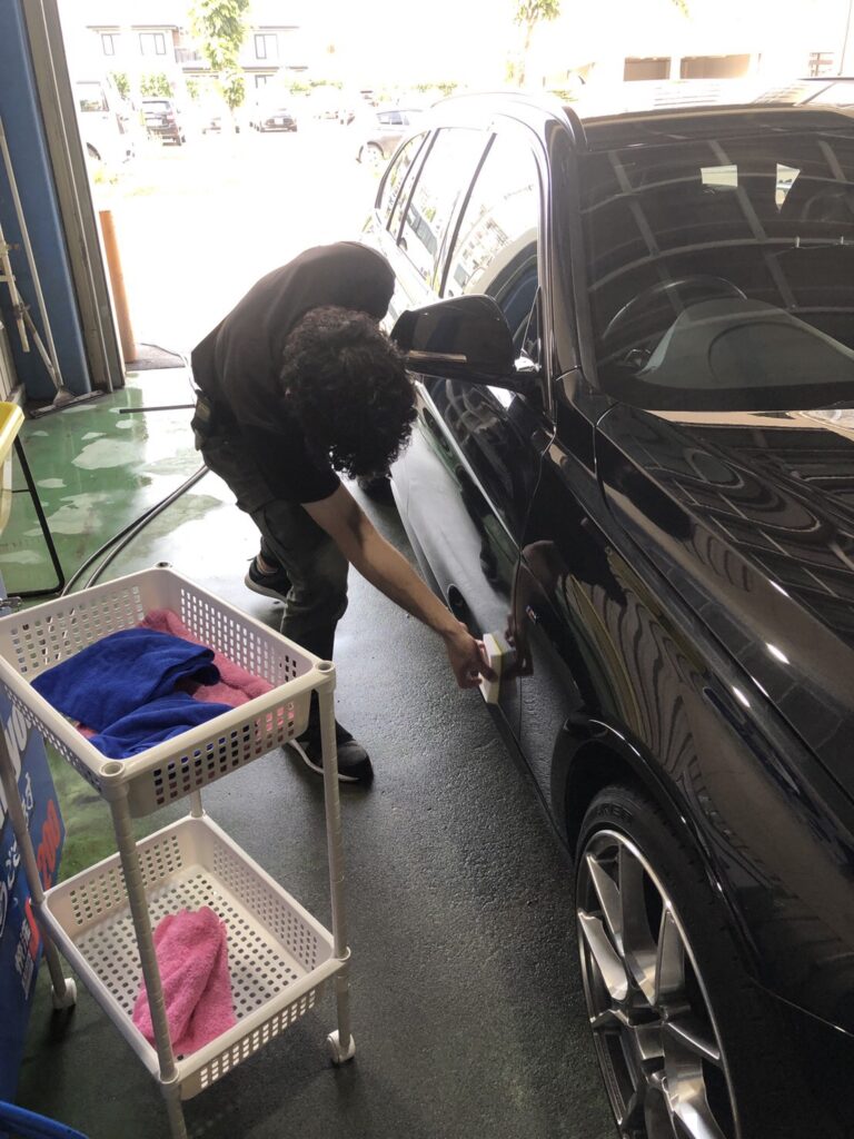 塗り広げながらガラス被膜を形成し、縦横にすり込みながら定着させていきます✨