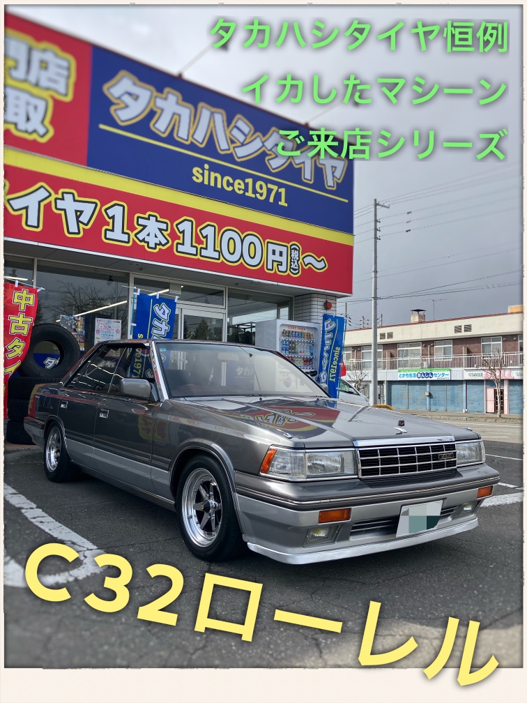 皆さまこんにちは!タカハシタイヤです! 無事リニューアルオープンを迎え、連日沢山のお客様にご来店頂いております! 当店マネージャーの狙い通り(?)、旧車好きのお客様も多数ご来店😄 そんなタカハシタイヤ、本日のご来店コーナーは程度極上のC32ロ... -