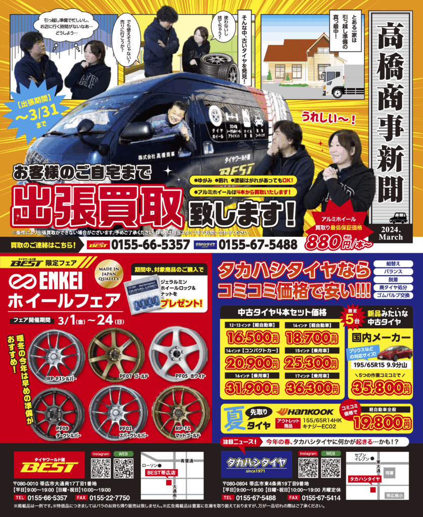 イベント告知‼️ ここ最近の気温上昇に便乗して、 春を待ち遠しい皆様へ‼️ タイヤワールド館ベスト帯広店の2024年イベント第1弾も告知したいと思います😁 まだすこーし先の話になりますが、 3/1(金)〜3/24(日)まで、 当店大人気のホイールメーカーENKEIホ...