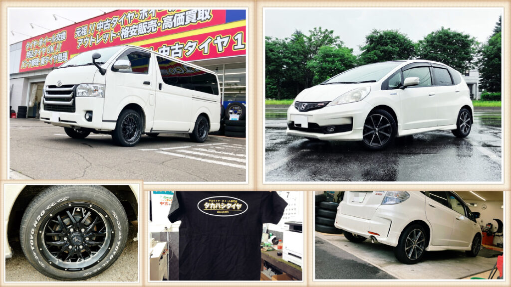 こんにちは!タカハシタイヤです!本日のご成約タイヤ&ホイールコーナーはフィットハイブリッド&ハイエース!