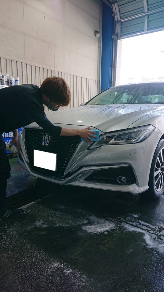 トヨタ クラウンにクリスタルキーパーを部分施工🚗✨ フロントバンパーを交換した為、部分的に施工させていただきました🤗まずは洗車をしていきます❗️当店はムース手洗い洗車になります💁 爆ツヤを使いコーティング施工前の下地処理を行います❗️主に水垢... -