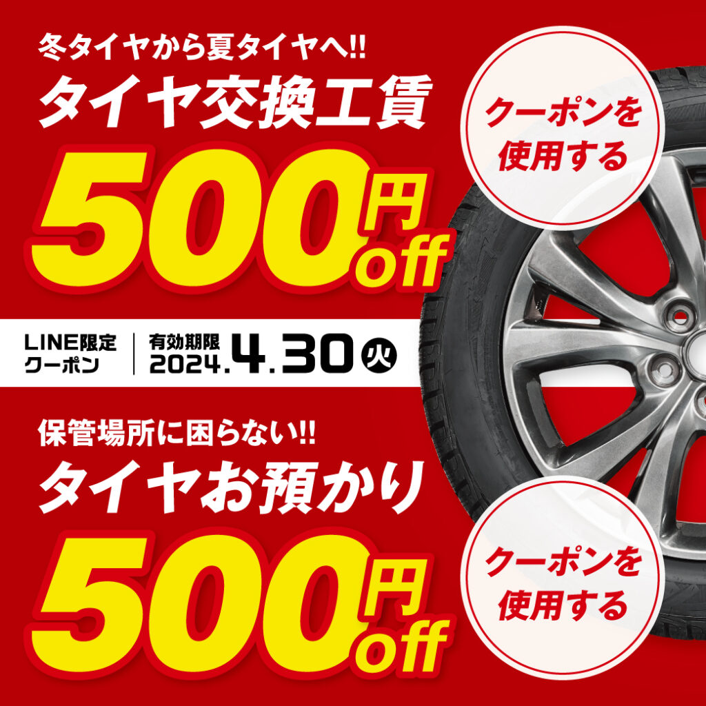 LINEお友だち限定!お得なクーポンを毎月配信しております。 今月は ☆タイヤ交換工賃500円OFF ☆タイヤお預かり500円OFF のクーポンで2種です! すでに「クーポン」をお持ちの方は今月いっぱいが期限となっております。 まだ、「お友だち」になっていない方... -