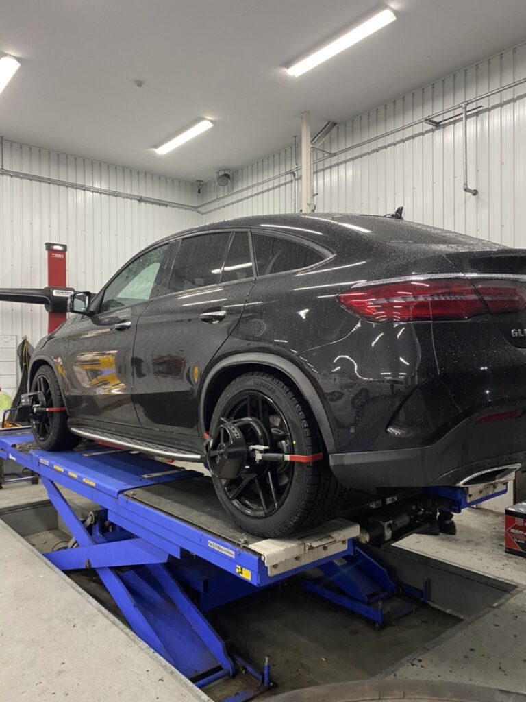 GLEクーペにスタッドレスタイヤ装着とアライメントです‼️🤩